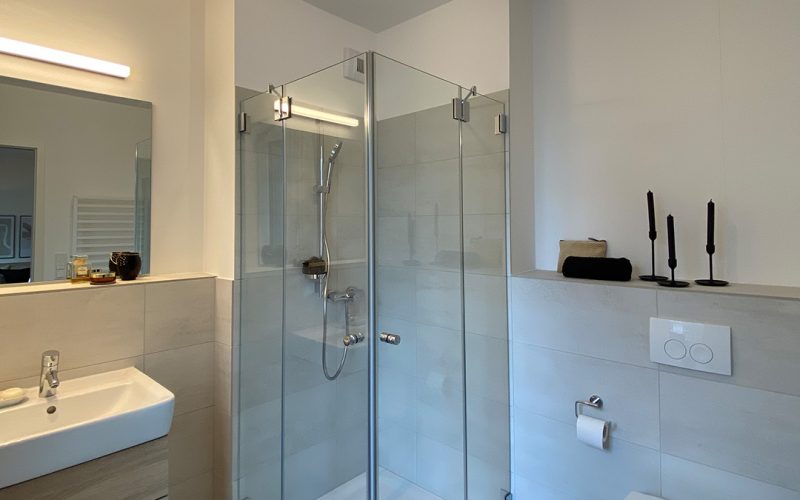 - Hochwertige Sanitärobjekte, teils mit Waschtisch-Unterschränken