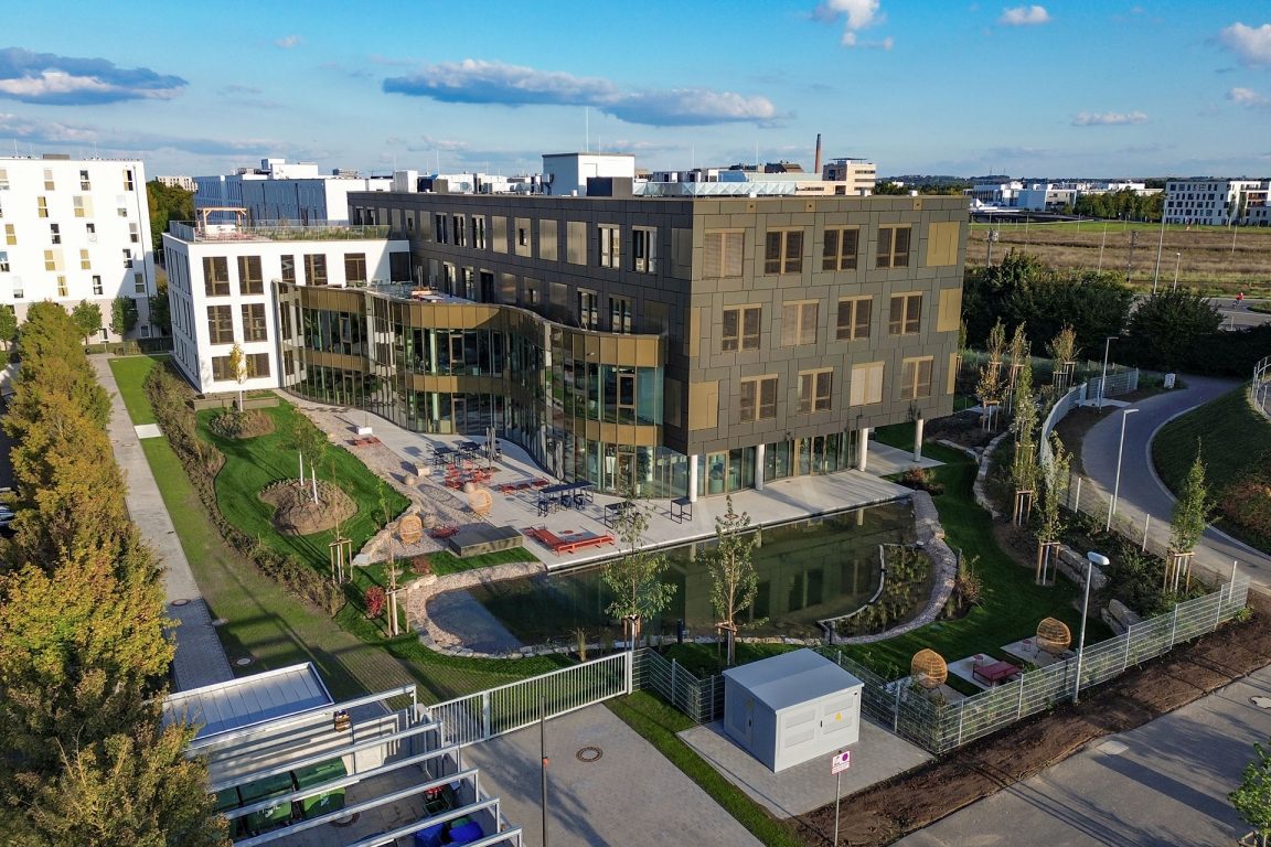 To save resources when watering the outdoor spaces, a process water pond will be created and additional rainwater will be collected via retention roofs. Rainwater infiltration trenches will also help to relieve the pressure on the public sewer system. Extensive charging infrastructure for e-mobility rounds off the comprehensive sustainability concept at the WALD.WEIT.