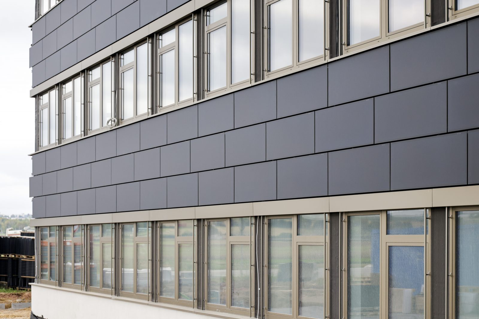 Auftakt-Laborgebäude mit innovativer Fassade: In direkter Nachbarschaft zur Universität Mainz entsteht in den kommenden Jahren ein hochmoderner Biotechnologie-Campus. Den Auftakt macht das Labor- und Bürogebäude LAB 1, das von der Bauunternehmung Gemünden errichtet wird. Nicht nur als erstes Gebäude, sondern auch ökologisch geht das Gebäude voran. So setzt etwa die innovative Fassade Maßstäbe, die aktuell mit Photovoltaik-Dünnschichtmodulen versehen wird. Die Fassade ist so konzipiert, dass auf allen möglichen Flächen rund um das Gebäude über Fassaden-PV Strom erzeugt werden kann. Besonders vorteilhaft für eine stromintensive Labor-Arbeitswelt: So können die solaren Gewinne optimiert werden. Die Fläche der PV-Paneele umfasst beim LAB 1 ca. 1.800 m². Die Spitzenleistung der PV liegt bei 100 KWpeak. Es ist von ca. 85.000 KWh an Stromproduktion pro Jahr durch die Fassade auszugehen. Weitere nachhaltige Komponenten des LAB 1 sind unter anderem die Holzhybridbauweise, die CO2 speichernde Holzfaserdämmung, der fast vollständige Einsatz von Recyclingbeton bei den Betonarbeiten, die Energieversorgung mit Heizen und passivem Kühlen über Geothermie sowie die Ladeinfrastruktur für E-Mobilität. Das LAB 1 ist Teil der InnovationLabz-Laborgebäude, die auf dem Campus von den regionalen Investoren J. Molitor Immobilien GmbH und G. L. Kayser Immobilien GmbH entwickelt werden. Für die architektonische Gestaltung zeichnet das Büro Ries + Ries Architekten und Ingenieure verantwortlich.