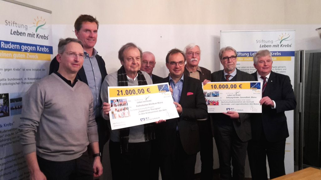 Bei der 14. Benefizregatta „Rudern gegen Krebs“ in Mainz kamen am 11. August vergangenen Jahres durch das Engagement der 444 Teilnehmer, Sponsorengelder und Spenden in der Höhe von 31.000 Euro zusammen.