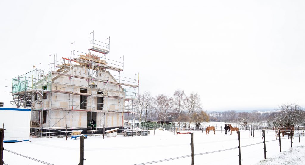 Die Arbeiten im neuen Baugebiet „In den Weiden“ gehen in großen Schritten voran. Mehr als die Hälfte der Doppel- und Reihenhäuser ist bereits vermarktet.