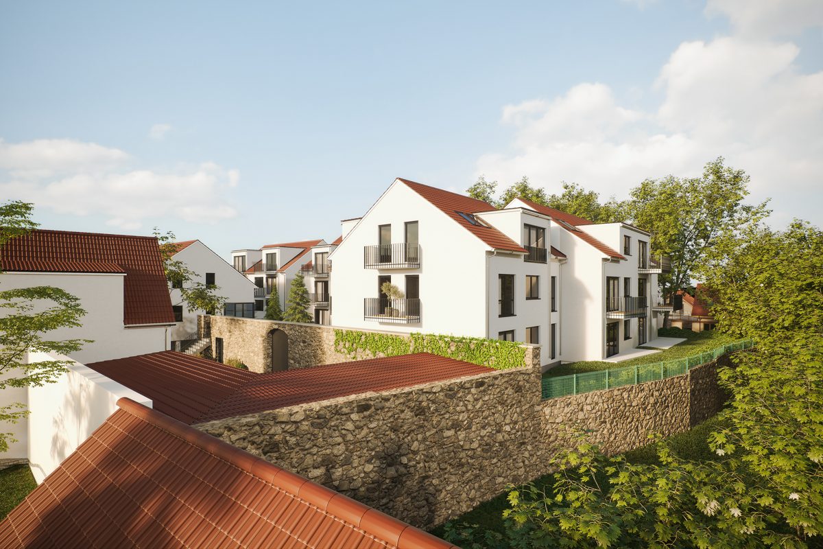 Liebevolles Ambiente und eine hervorragende Infrastruktur verbindet das Wohnensemble „An der Kirchenpforte“. Auf einem grünen Plateau gelegen, punkten die Eigentumswohnungen teilweise mit Blick über Bretzenheim und auf die malerische Kirche St. Georg. Der großzügige Innenhof mit denkmalgeschützten Bereichen und Natursteinmauern verleiht dem Ensemble historischen Charme.