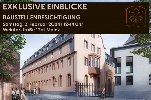 Historisches Ambiente trifft modernste Ausstattung. Und das teilweise mit phänomenalem Blick auf den Mainzer Dom. Interessierten bieten wir am 3. Februar 2024 von 12–14 Uhr die Möglichkeit, bei unserer offenen Baustellenbesichtigung Einblicke in die Entstehung der noch zum Verkauf stehenden Eigentumswohnungen zu erhalten.