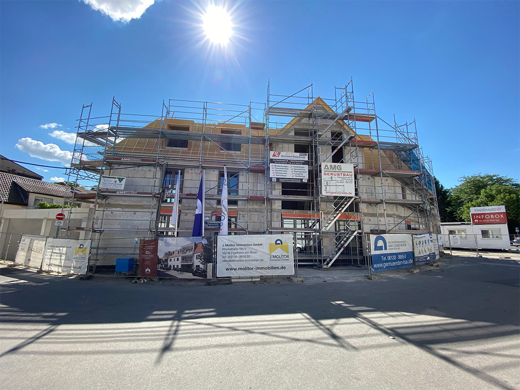 Auf der Baustelle „Stadthaus 12“ im sonnigen Mainz-Hechtsheim gibt’s immer mehr zu sehen. Ab sofort können Sie den Rohbau besichtigen und sich aus erster Hand ein Bild von den großzügigen Eigentumswohnungen machen. Das Mehrfamilienhaus bietet 12 individuelle Wohnungen: Vom kompakten Singleappartement bis zur weitläufigen 4-Zimmerwohnung mit Wohlfühl-Balkon. Bei einem Rundgang können Sie schon jetzt die durchdachten Grundrisse bewundern. Man kann sich gut vorstellen, wie schön es hier bald sein wird – noch dazu mit Ihren individuellen Ausbauwünschen, die Sie jetzt noch festlegen können. Und das alles in dieser großartigen Lage: Zwischen ruhigen Spazierwegen und der quirligen Mitte des gefragten Stadtteils Mainz-Hechtsheim. Sie interessieren sich für eine der Eigentumswohnungen? Vereinbaren Sie jetzt Ihren Besichtigungstermin unter 06132 9955 565 oder unter vertrieb@molitor-immobilien.de