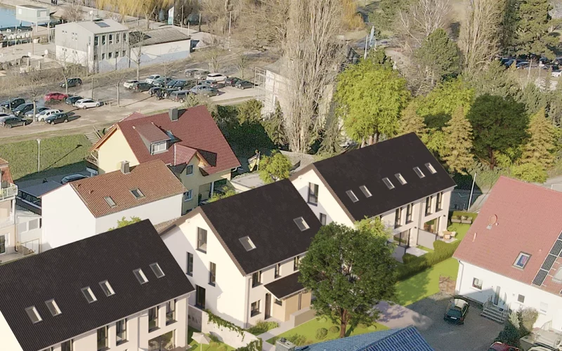 In Frei-Weinheim, dem Rhein-Stadtteil von Ingelheim, entsteht „In der Rheingewann“ ein modernes Wohnensemble aus zwei Doppelhaushälften und drei Townhäusern. Das Neubauprojekt überzeugt mit hellen Räumen, durchdachten Grundrissen und privaten Rückzugsorten die Platz schaffen zum Leben, Spielen und Ankommen – ein Ort, an dem sich Groß und Klein direkt zu Hause fühlen.
