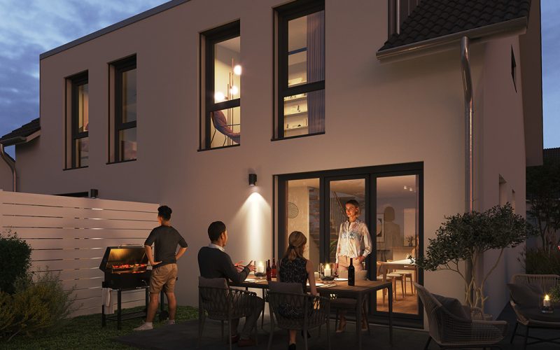 Ein Zuhause, bei dem Komfort, Nachhaltigkeit und Effizienz Hand in Hand gehen. Und das auch noch in einem familienfreundlichen Umfeld. Ist das auch Ihr Traum? Dann lassen Sie Ihn wahr werden! Hochwertige Doppelhaushälften, welche sich flexibel an Ihre Bedürfnisse anpassen lassen. Dazu ein traumhafter, weitläufiger Garten und eine umweltfreundliche Energieversorgung. So geht Wohnen im Einklang mit der Umwelt und ganz viel Wohnqualität.